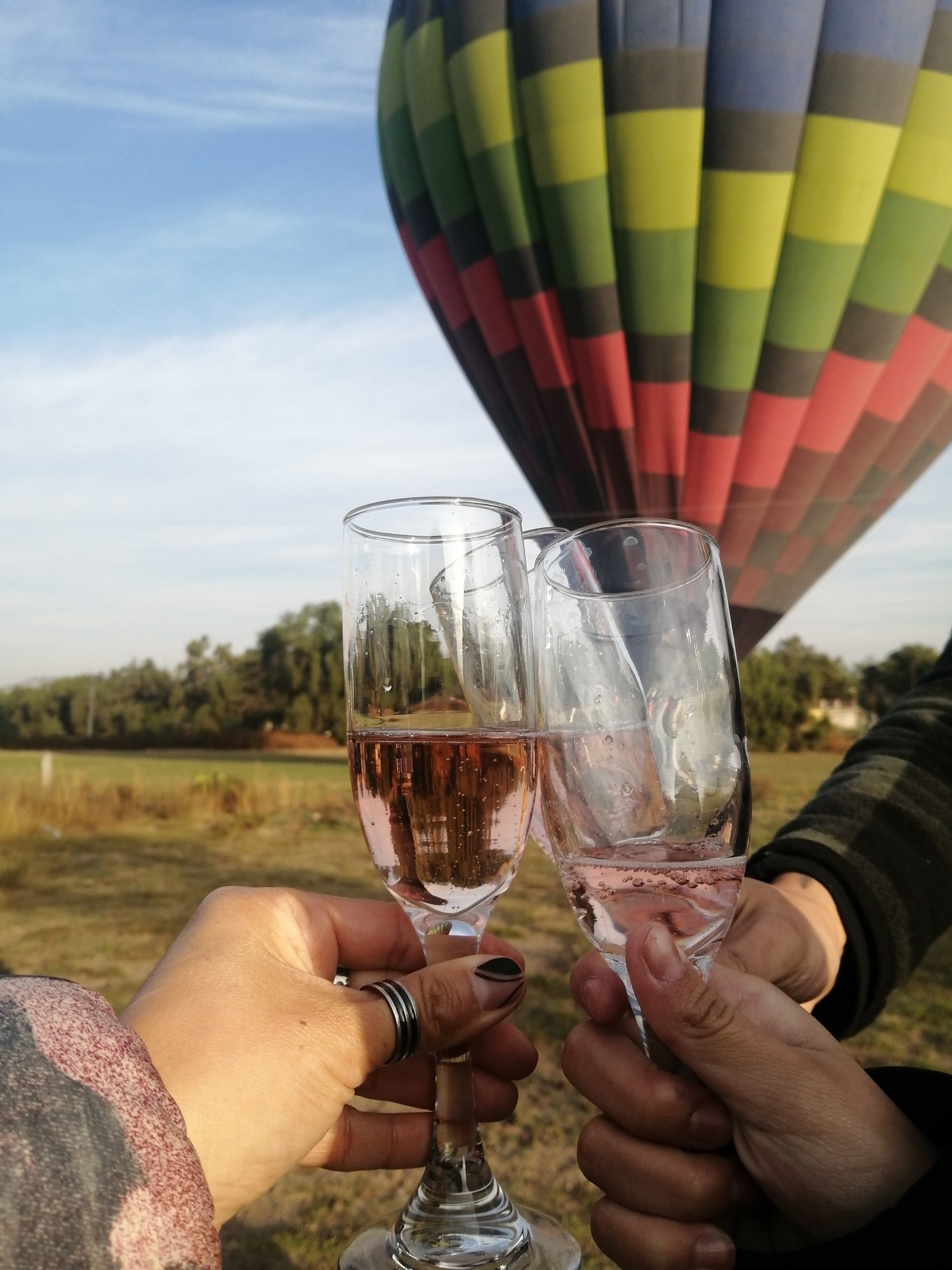Comienza tu día con un vuelo en globo al amanecer, cuando el sol ilumina poco a poco la Pirámide del Sol, la Pirámide de la Luna y la Calzada de los Muertos, creando un paisaje único e irrepetible. Acompañado de pilotos certificados, disfruta de un recorrido suave y panorámico, ideal para parejas, familias o aventureros que buscan un recuerdo para toda la vida. Celebra tu experiencia con un brindis tradicional al aterrizar y recibe un certificado de vuelo como recuerdo de esta aventura única.Después del vuelo, vive una experiencia gastronómica diferente: un desayuno típico en una cueva, rodeado de un ambiente místico que conecta con la grandeza ancestral de Teotihuacán.